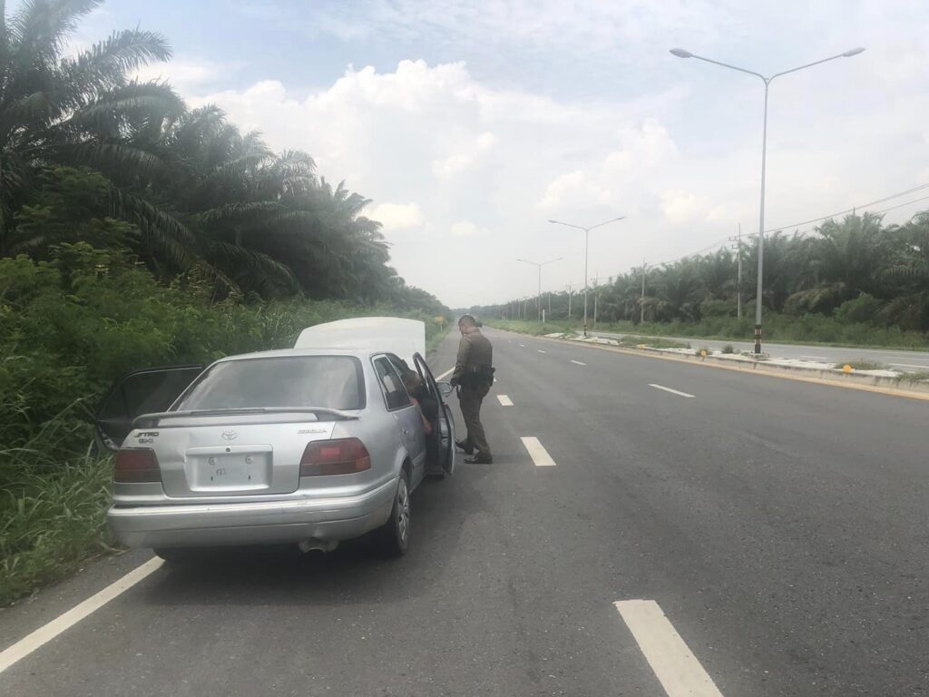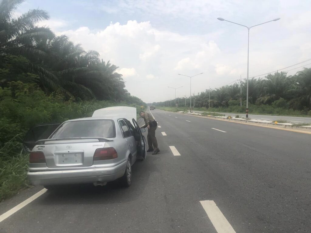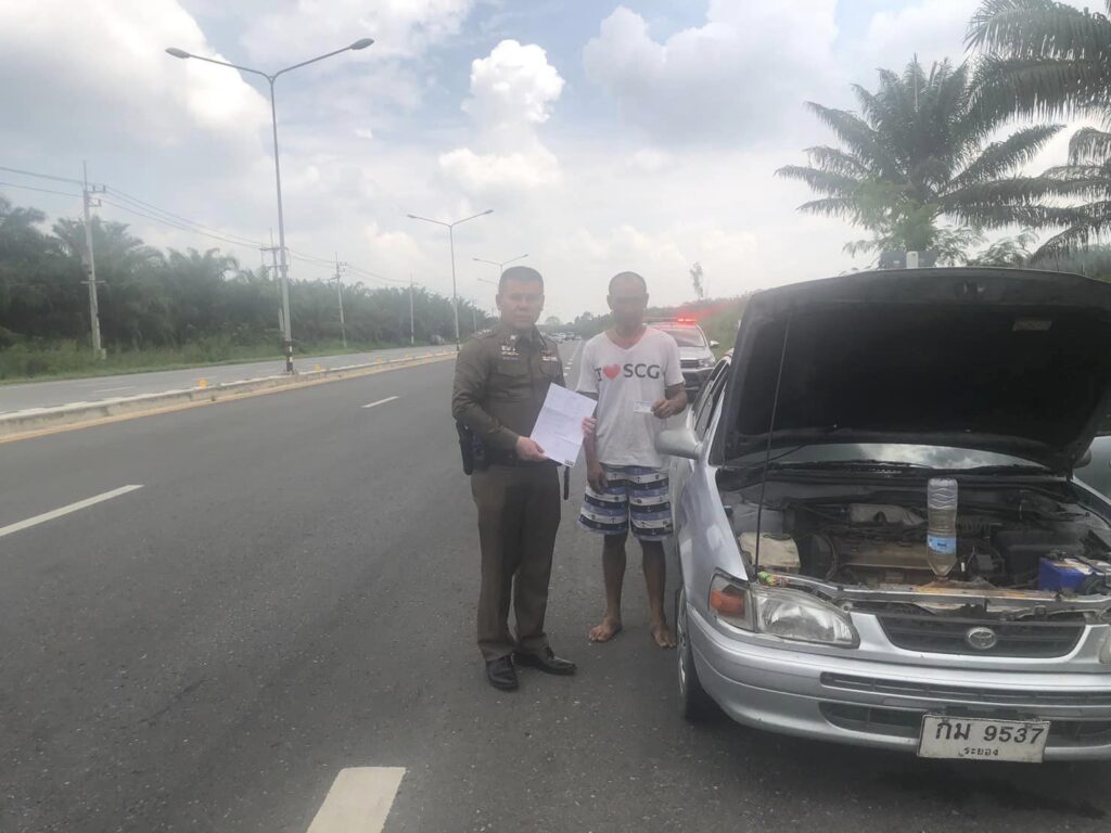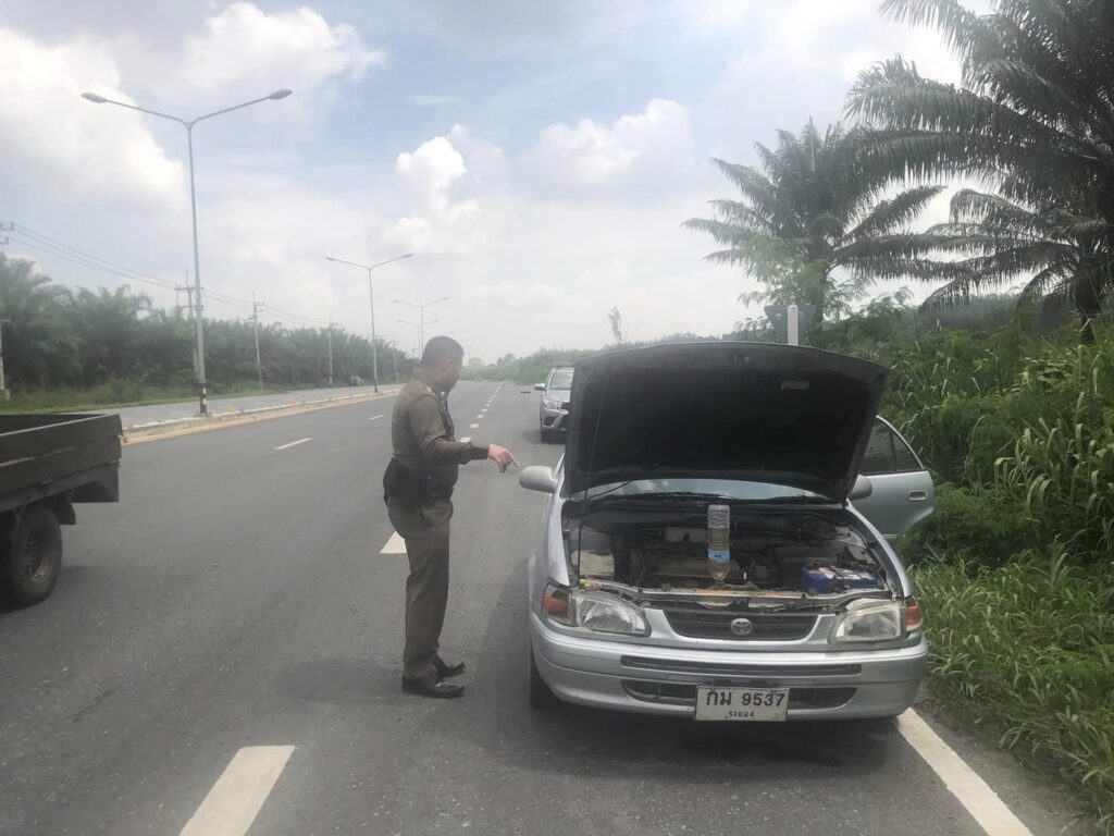 ว.4 ช่วยเหลือ รถเก๋ง หมายเลขทะเบียน กม 9537 ระยอง จอดเสียอยู่ข้างทาง