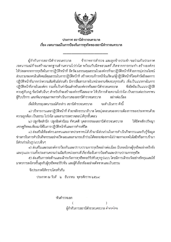 023 ประกาศนโยบายต่อต้านการรับสินบน (Anti-Bribery Policy) และนโยบายไม่รับของขวัญและของกำนัลทุกชนิด (No Gift Policy) จากการปฏิบัติหน้าที่